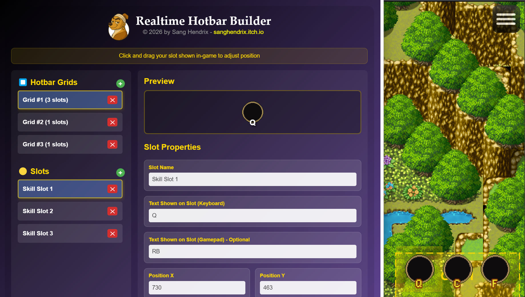 | Tags | gamepad, game-ui, Graphical User Interface (GUI), hotbar, plugin, quick-access-bar, RPG Maker, RPG Maker MV, RPG Maker MZ, slots-ui |