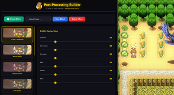 This RPG Maker MZ plugin enables you to apply post‑processing effects and view the results instantly. Post‑processing adds the finishing touches that can significantly enhance the overall look and feel of your game.